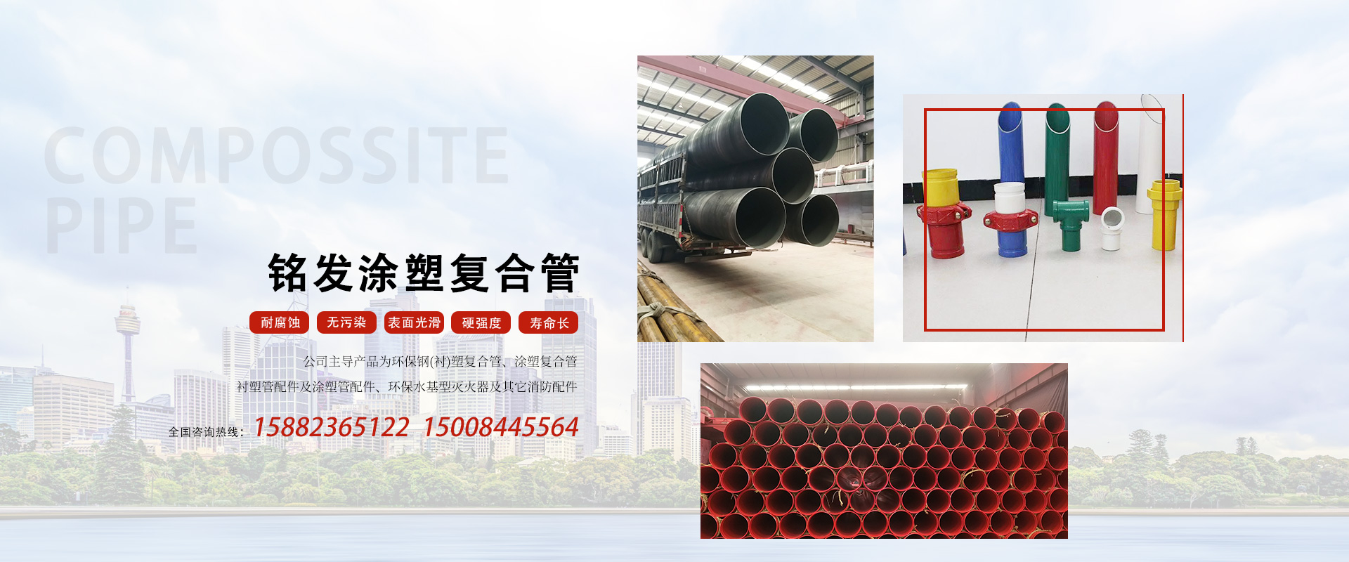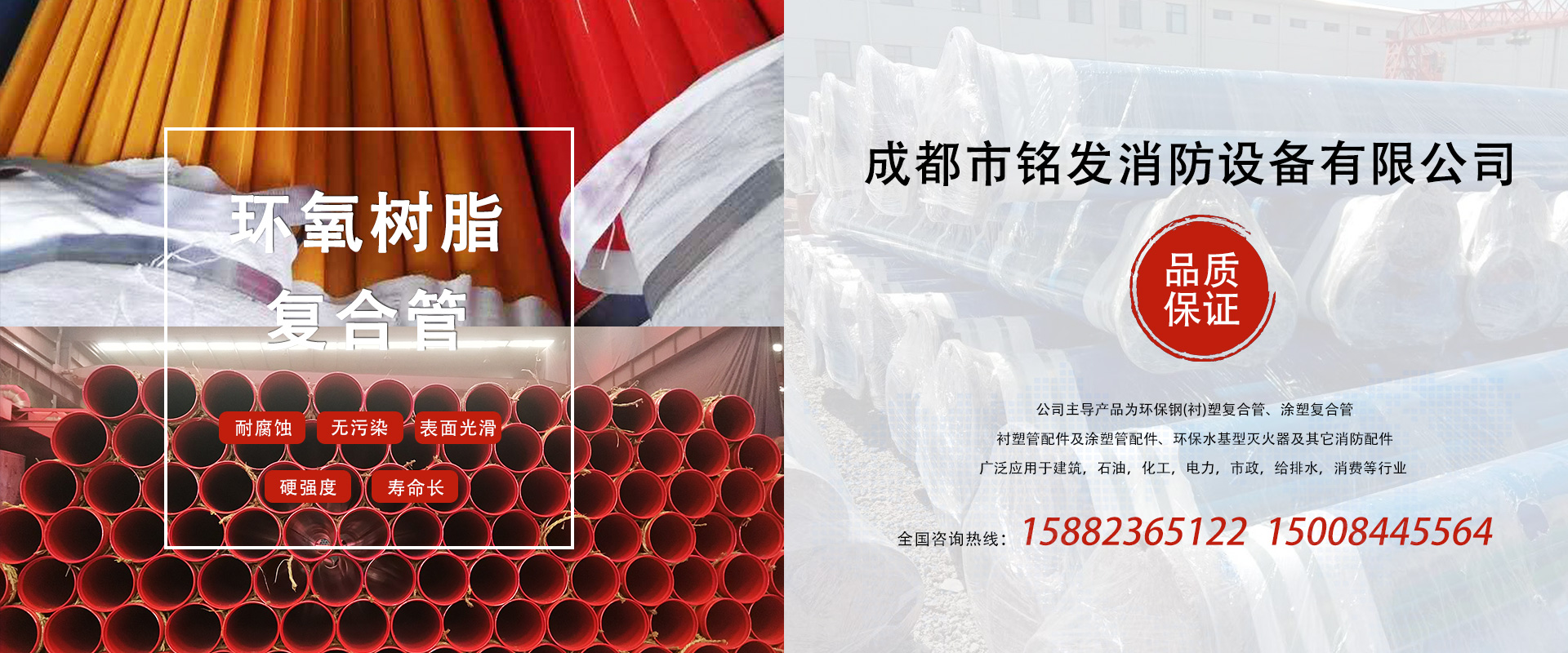 成都市銘發(fā)消防設備有限公司主導產(chǎn)品為環(huán)保鋼(襯)塑復合管、涂塑復合管、襯塑管配件及涂塑管配件、環(huán)保水基型滅火器及其它消防配件。廣泛應用于建筑、石油、化工、電力、市政、給排水、消防等行業(yè)。...